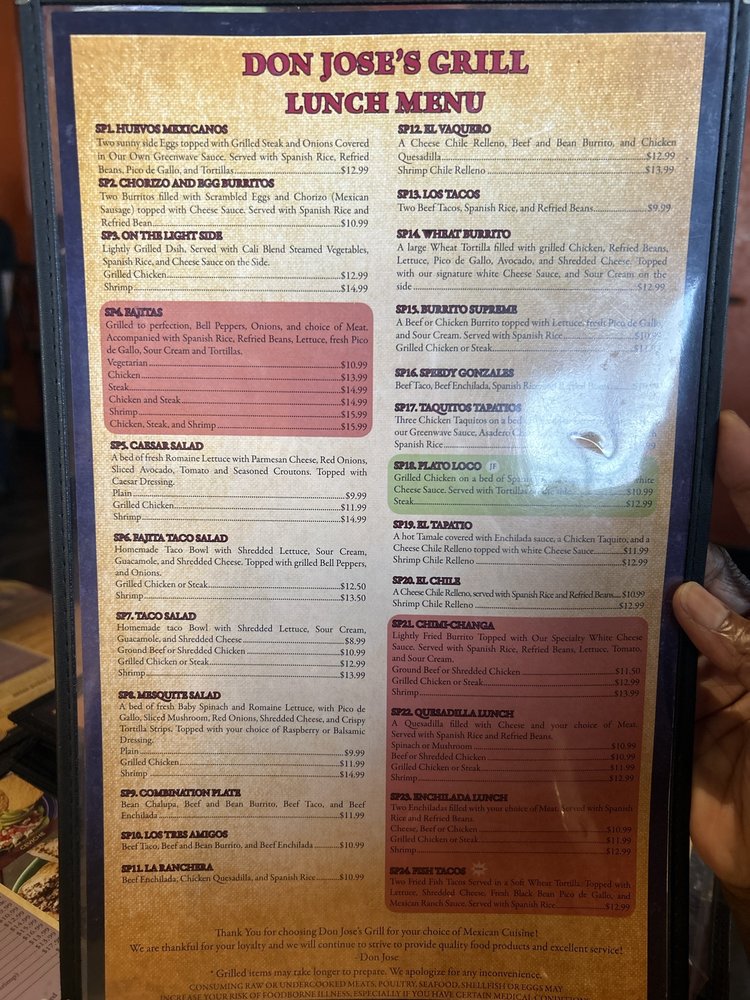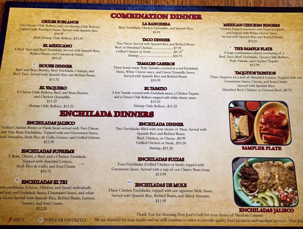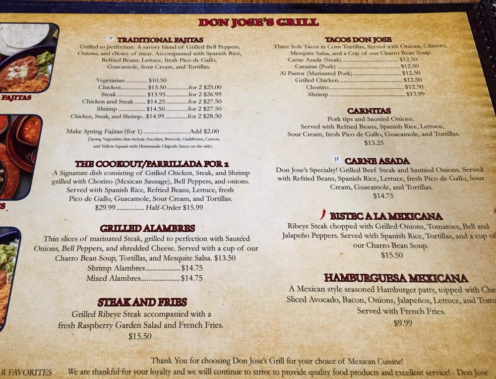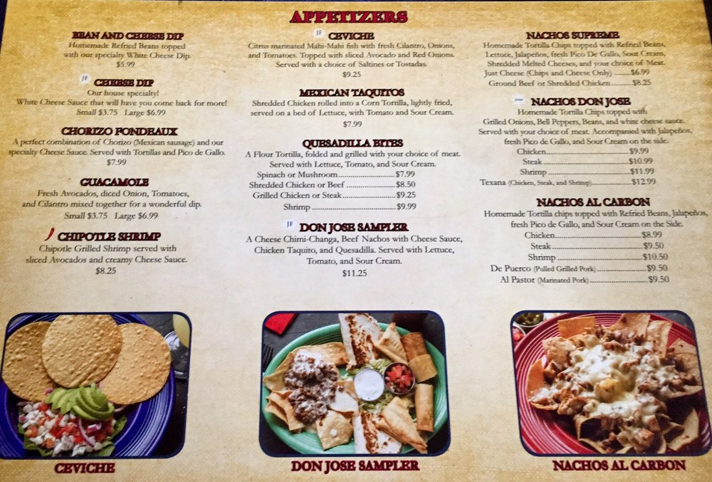 Don Jose's Grill is a Mexican restaurant located in Kenner, LA, offering a wide range of options for its customers. From appetizers like Bean and Cheese Dip to main dishes like the Traditional Fajita, the menu caters to all tastes. Customers rave about the delicious food and great service, with highlights including the queso and fajitas. The restaurant offers a casual dining experience with the option for outdoor seating, making it a great choice for a meal with friends or family. Don Jose's also provides happy hour specials and has a full bar, perfect for winding down after a long day. With positive reviews from satisfied customers, Don Jose's Grill is definitely worth a visit for authentic and flavorful Mexican cuisine.
