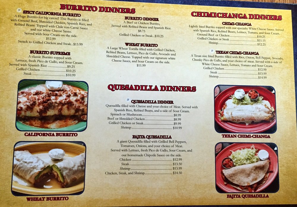 A cheese Chile-relleno, beef and bean burrito, and chicken quesadilla.